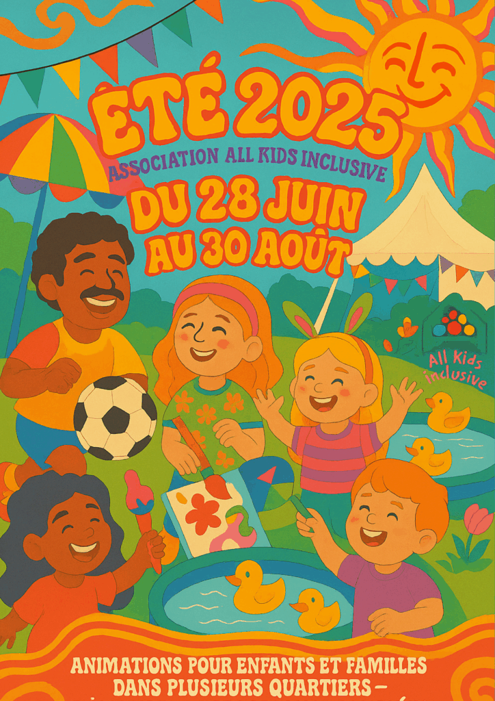 Un programme très riche a pu être proposé durant l’été 2025, autant grâce aux subventions publiques et privées que par des financements sous formes de mandat de prestations, comme au CHC Seymaz (Hospice Général), à la Patinoire des Charmilles (Service de la Jeunesse Ville de Genève) ou encore, pour la première fois cette année, avec Français en été. All Kids Inclusive y a encadré les activités enfants au parc de Balexert, en collaboration avec la Ville de Vernier.